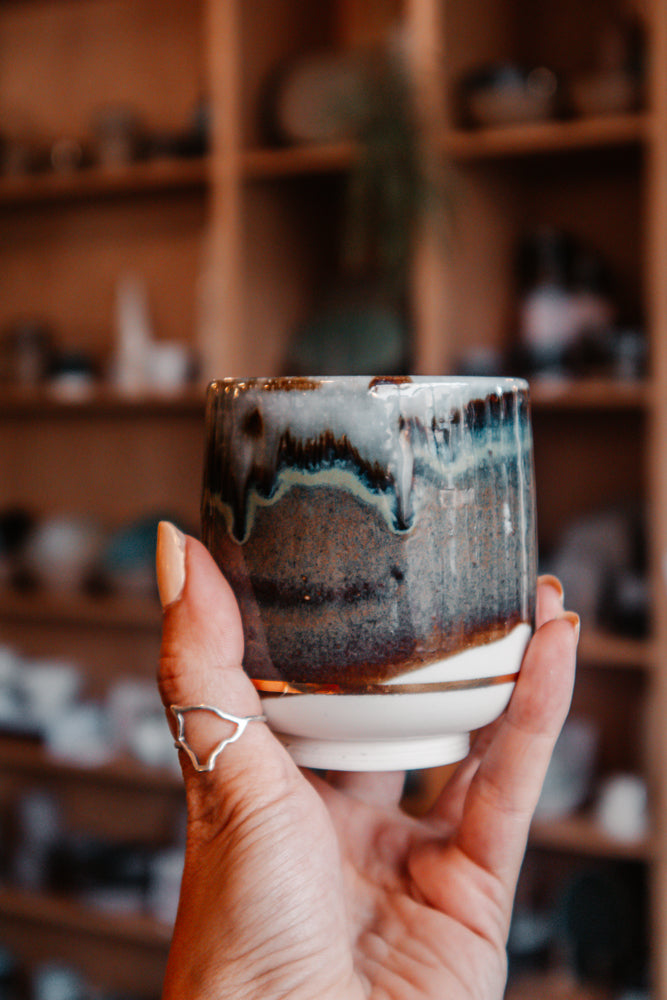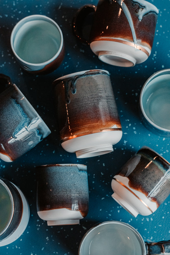 Cette collection est venue un peu par hasard, en faisant quelques tests de glaçures à la fin de mes années d'étude. J'ai toujours trouvé que la superposition entre deux glaçures était fascinante. Mais c'est quelques années plus tard que j'ai repris cette dualité d'émaux sur une autre terre, la Polar Ice. C'est une semi-porcelaine translucide qui est assez complexe à travailler, mais qu'est ce qu'elle est belle! Et justement elle sublime les glaçures.