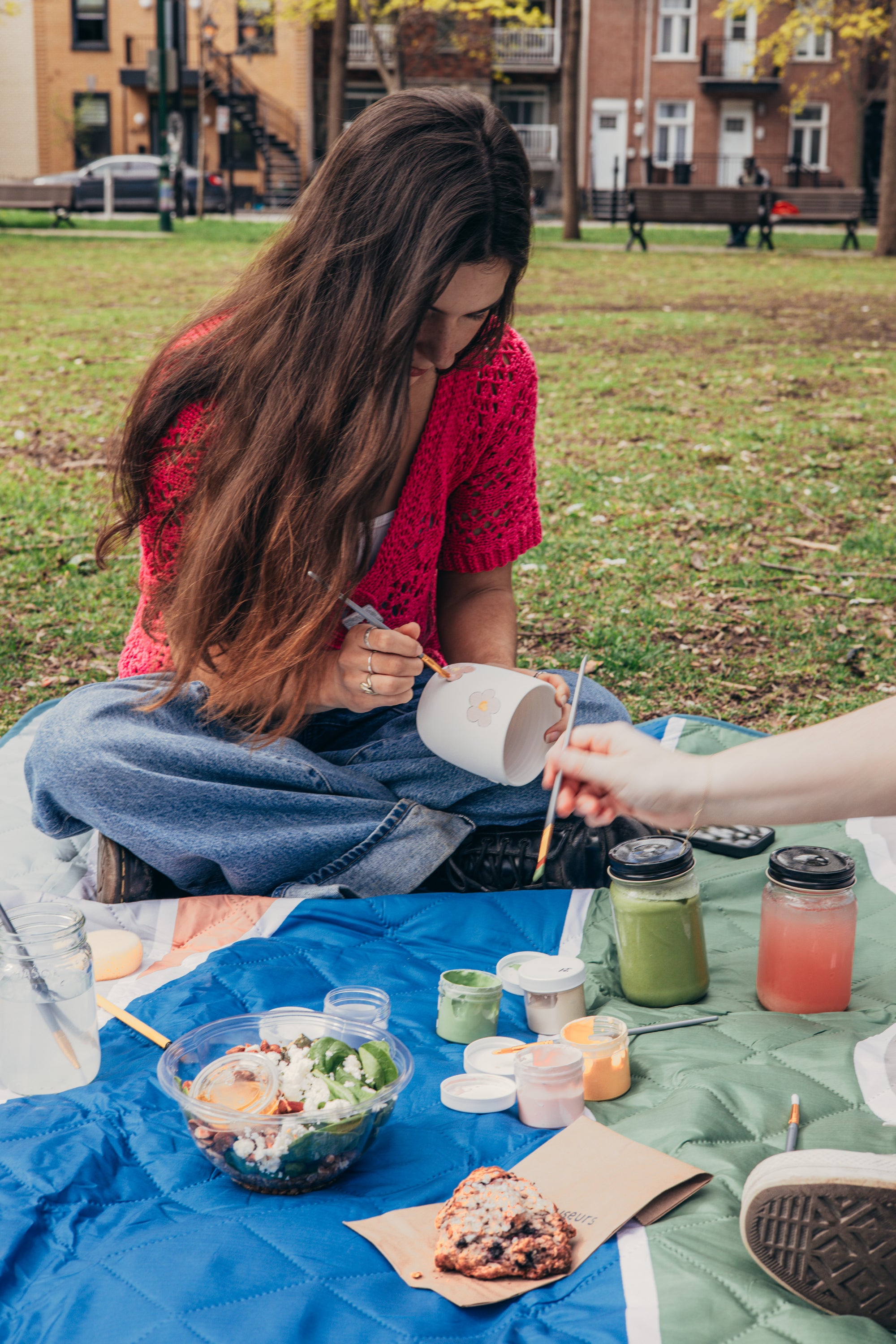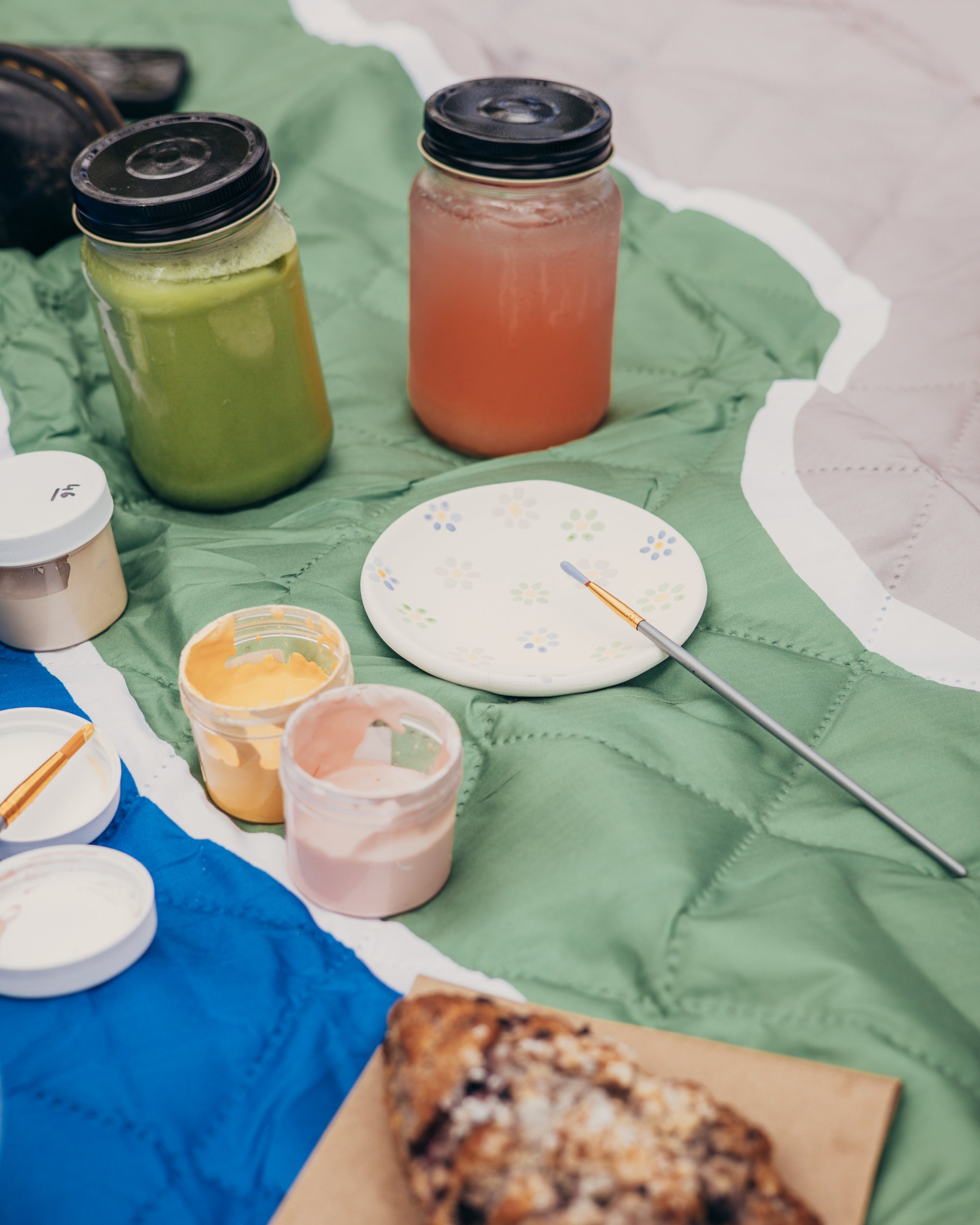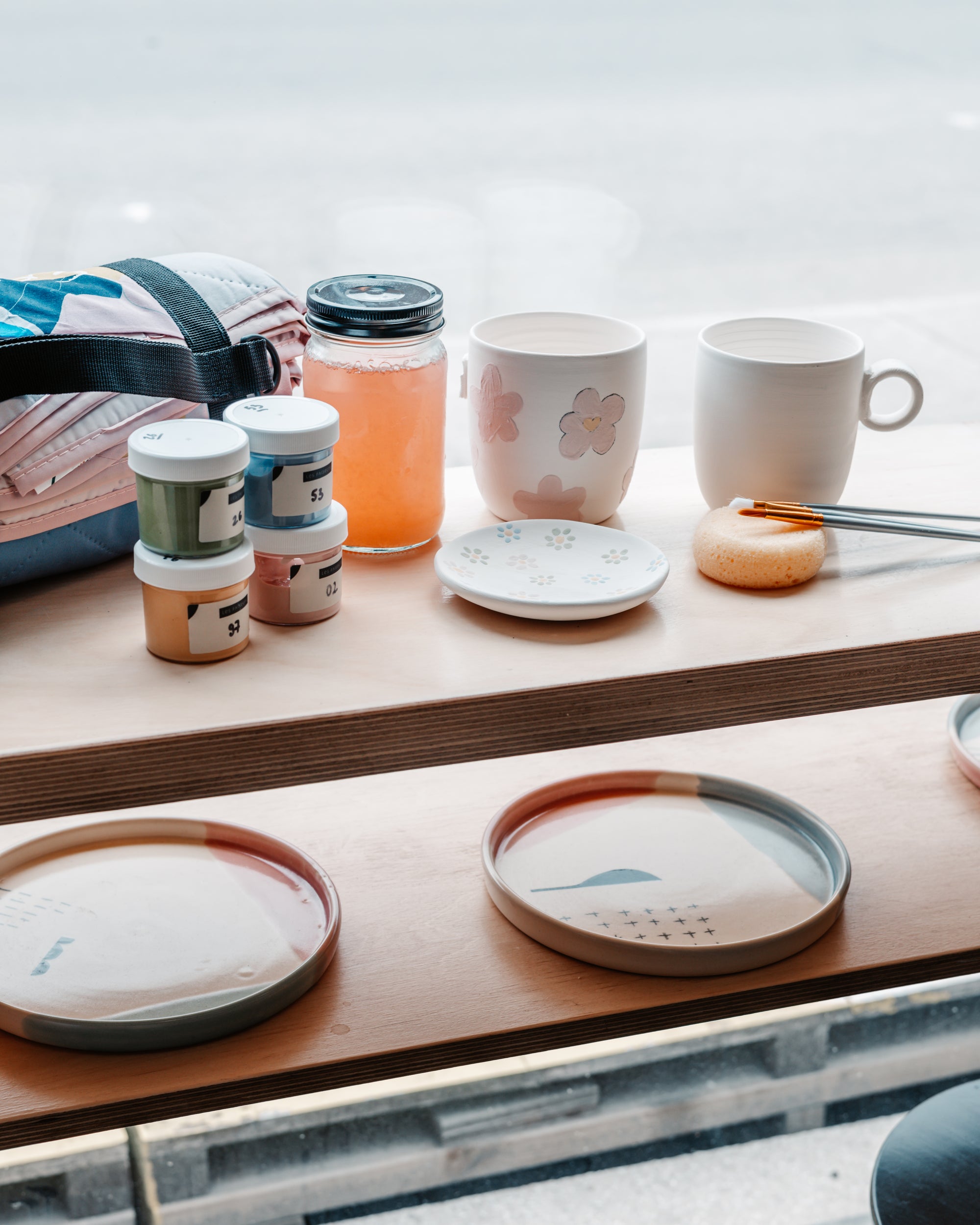 Avant de vous rendre au parc, passez en premier au café pour choisir votre pièce de céramique à peindre, parmi une belle sélection faite par des artistes locaux. Puis, nous allons vous donner un pot masson rempli d’eau, un papier brun pour essuyer vos pinceaux, et jusqu’à 6 petits pots de couleur pour vos créations.