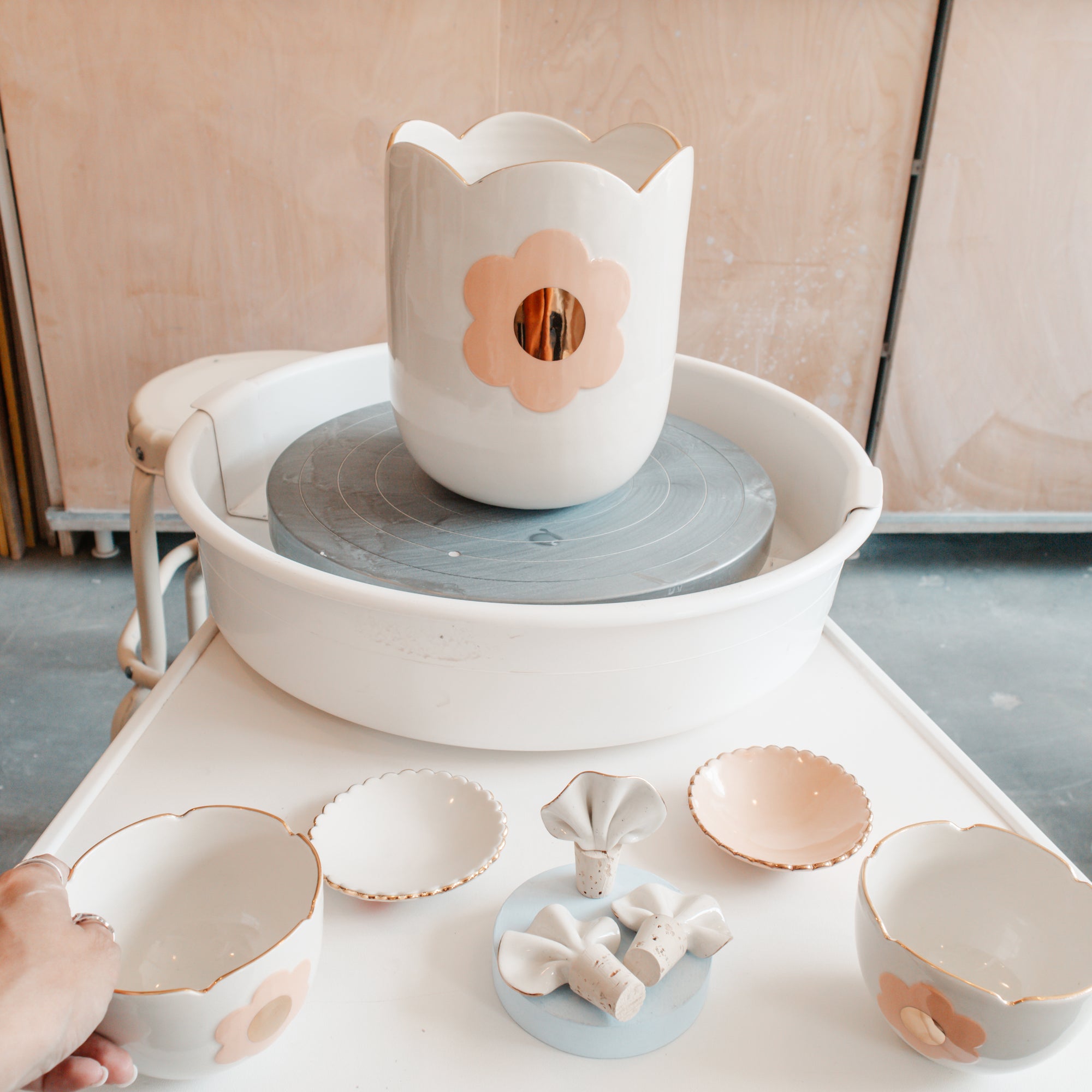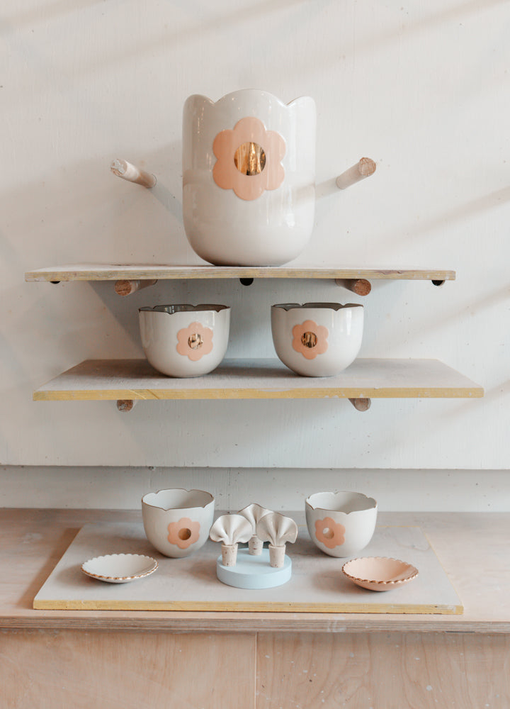 Je suis devenue récemment maman de 3 enfants donc je suis moins souvent présente dans mon atelier qu’auparavant. Je consacre 2 jours par semaine à ma céramique.