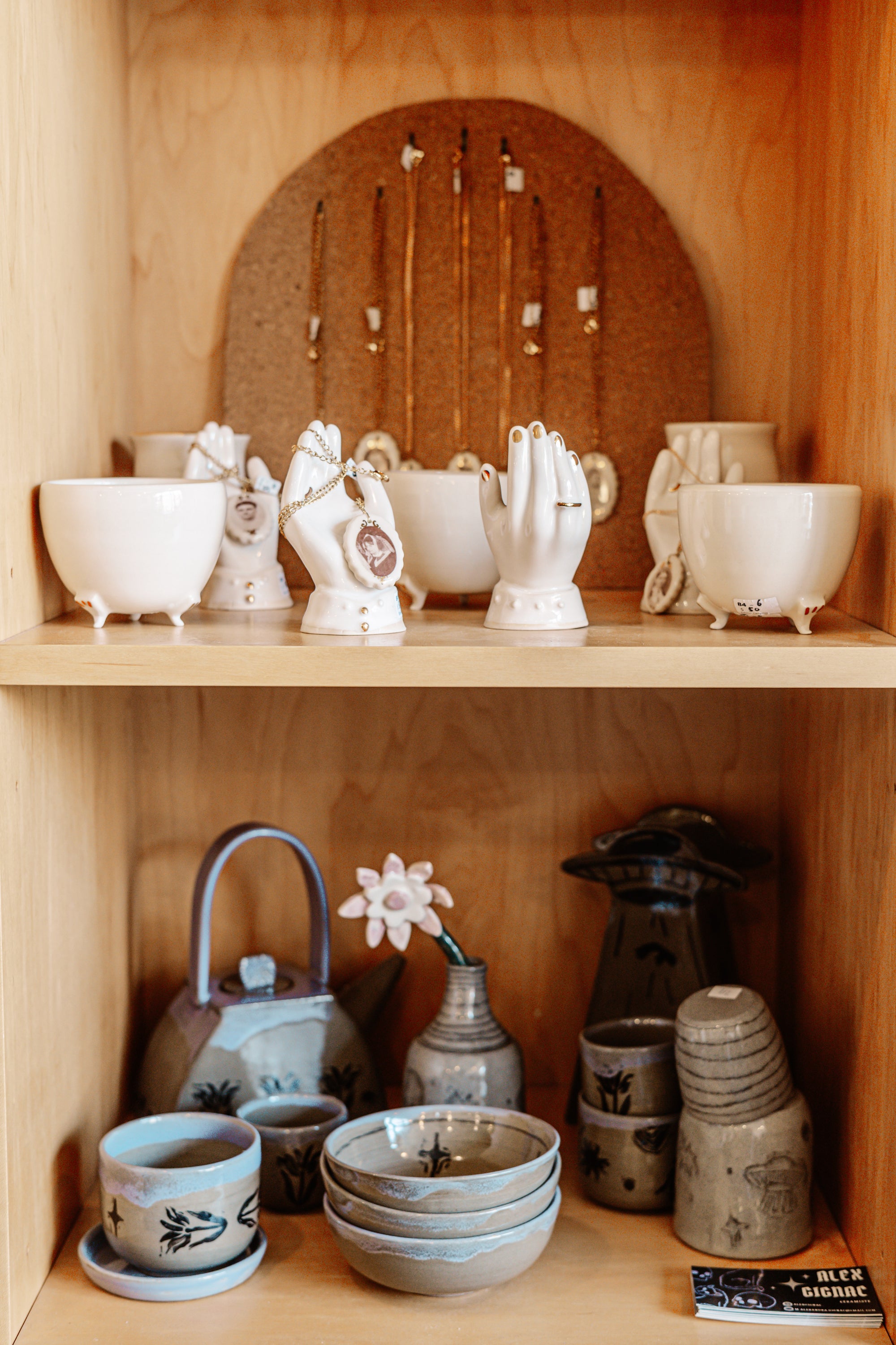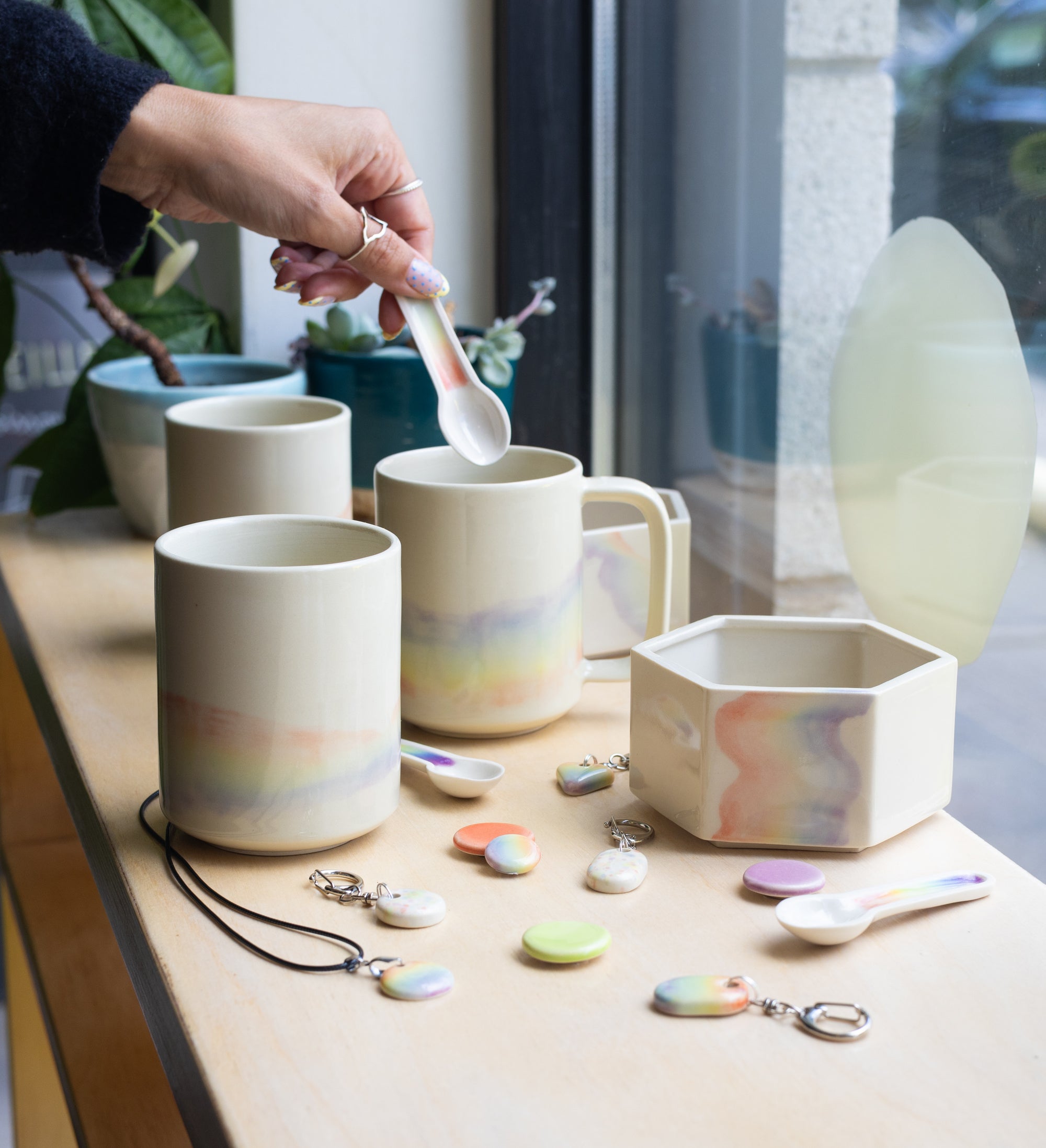 Audrey L: J’aime énormément les pièces uniques de la céramiste Isabelle Simard de même que l’approche plus artistique de Paul Guidera (Paul est enseignant chez Les Faiseurs!). Chacune de leurs pratiques repose sur une forme d’imaginaire personnelle, dans un travail de l’argile ludique, coloré et narratif. En