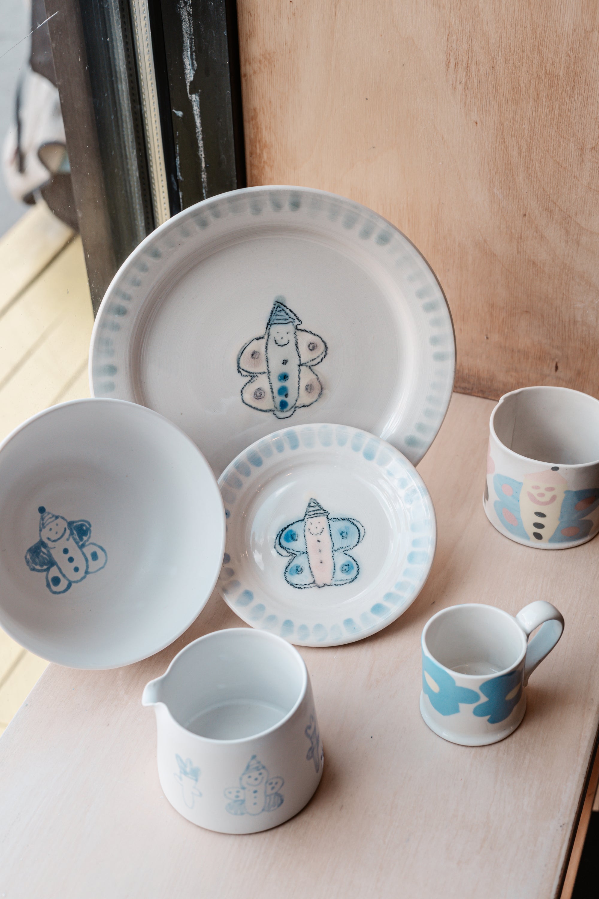 l’enfance. Par le dessin, la couleur, de même que par le modelage, au travers des techniques traditionnelles du tournage et du façonnage, il était important, pour moi, de trouver une source de plaisir dans le travail de l’argile, afin d’offrir des pièces ludiques et accessibles autant aux petits et qu’aux grands.