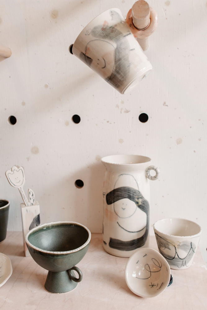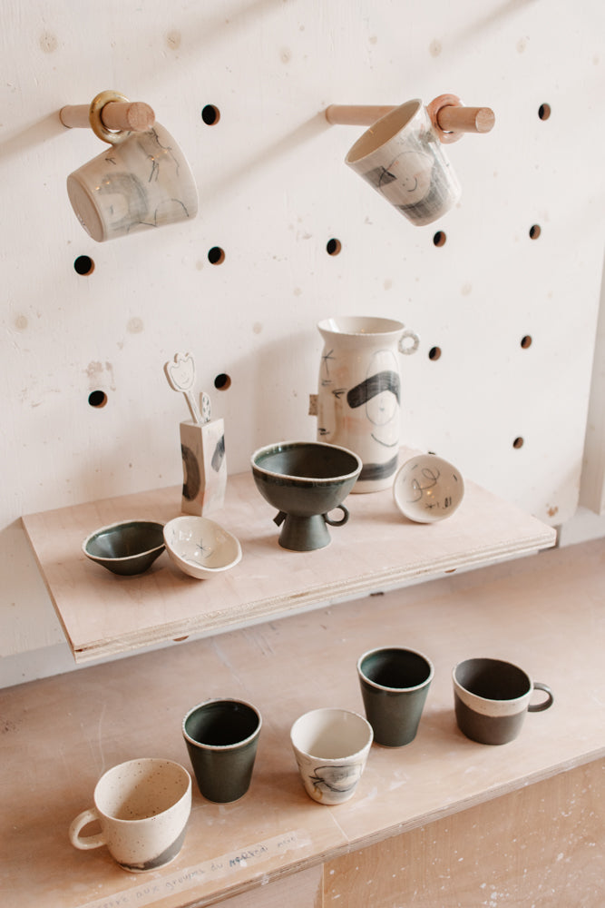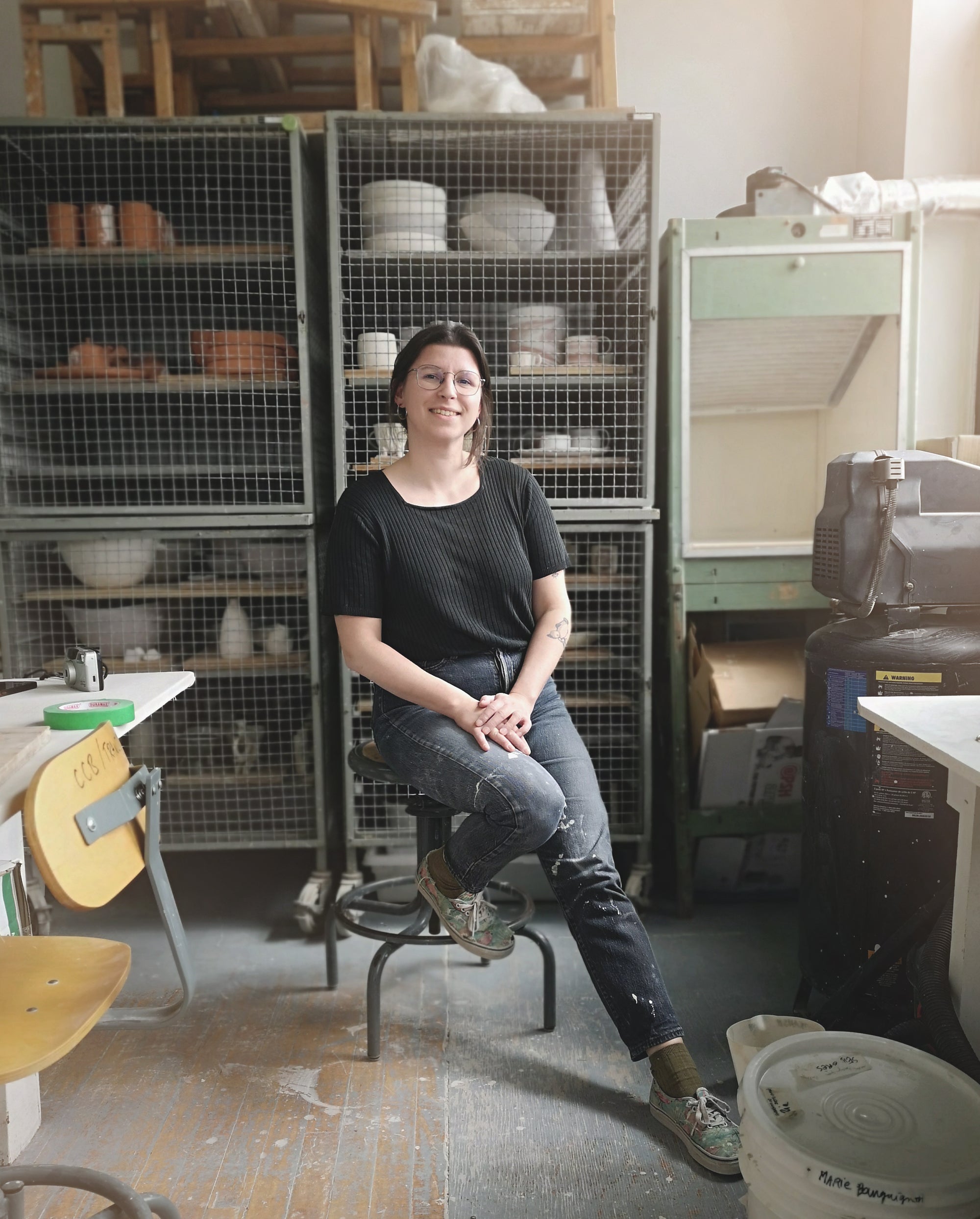 Je suis graphiste de formation, mais ma maman est potière depuis plus de 30 ans, j’ai donc grandi dans cet univers. Jusqu'à récemment, je n'avais pas pensé à faire de la céramique mon métier. C’est en 2018 lorsque je suis retournée vivre quelques mois chez mes parents que je me suis remise à explorer l’argile dans l’atelier de ma mère. Je suis ensuite venu au Québec et j’ai décidé de reprendre une formation au centre de Céramique Bonsecours afin d’approfondir mes connaissances. J’ai obtenu mon diplôme en juin 2023 et j’ai commencé à enseigner aux Faiseurs en novembre de la même année. En parallèle je continue d’explorer les différentes facettes que la céramique a à nous offrir.