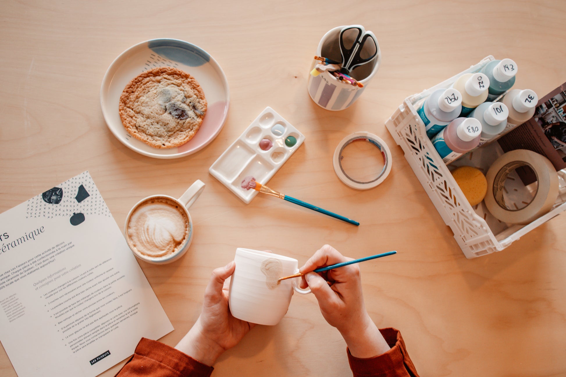 In our café space, we offer ceramic painting activities. What sets us apart? We avoid standard pieces and instead offer you a selection of unique ceramics, handmade by local artists.