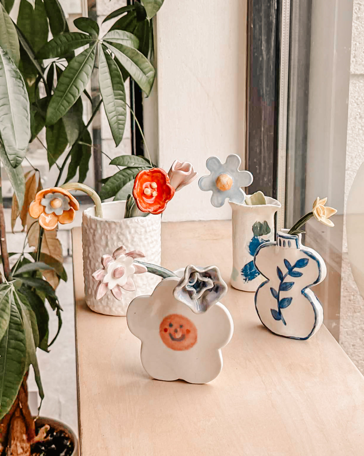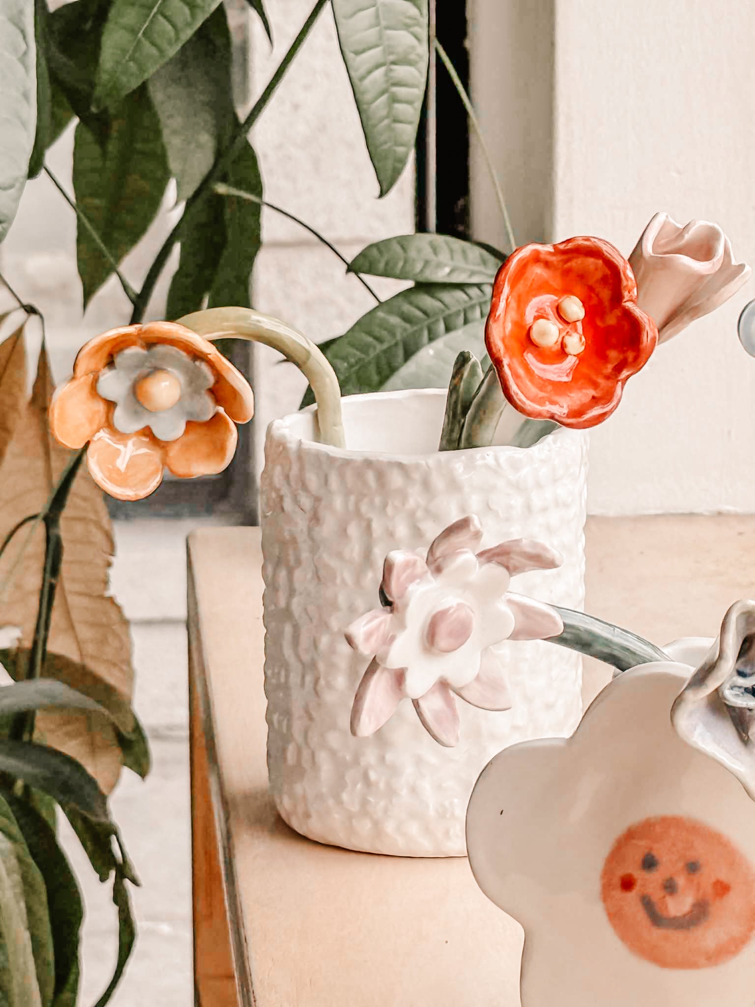 Avez-vous vu nos jolies fleurs en céramique dans l'espace boutique du café?
