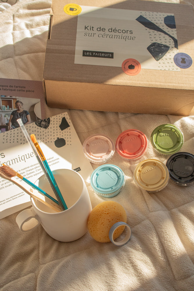 Laissez libre cours à votre imagination avec notre kit de peinture sur céramique pour la maison. Il contient tout le nécessaire pour personnaliser et décorer une tasse réalisée par une artiste céramiste. Un cadeau original et créatif qui peut convenir aux petits comme aux grands!
